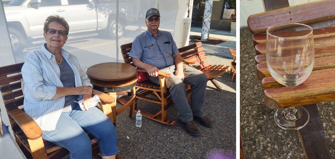 Another furniture item that caught my eye was a two-piece ‘folding’ chair, using the curve and comfort not only for the seat but also as a backrest. The really cool design feature is the ability to lift it and unfold the back rest and seating, leaving you with two flat pieces to store. It also has a nifty wine glass holder. Al said it was his best-selling piece. Al’s furniture is finished with a similar coating that is used for wooden boats. He even uses the barrel's metal rings for his table designs, so nothing gets wasted!