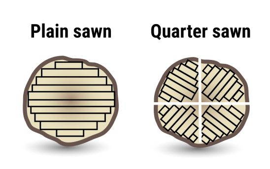 Because of the orientation of the growth rings during cutting, quarter sawn oak wood is naturally resistant to cupping, penetration from moisture, and degradation by the elements. It also receives finishes and stains particularly well as compared to plain sawn oak.