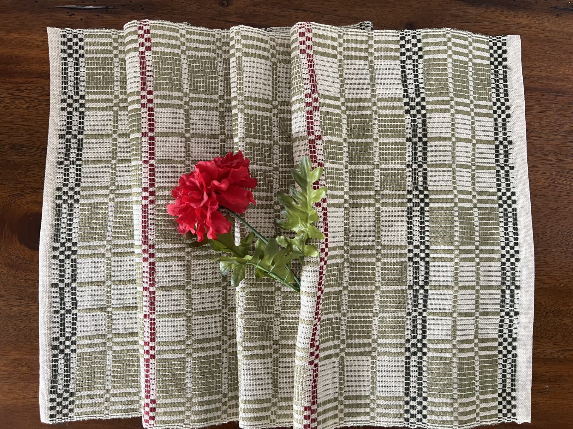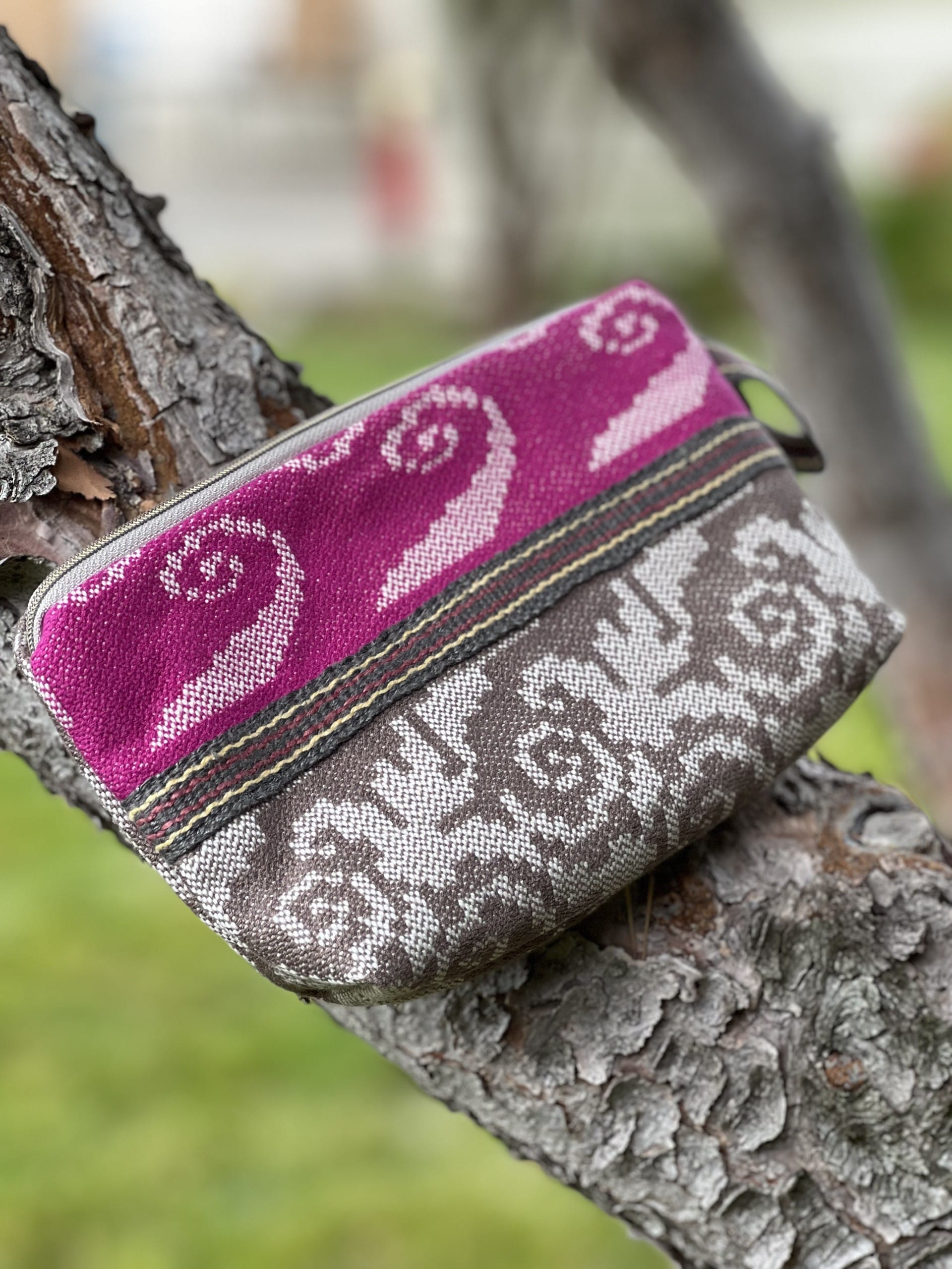 Hand-sewn purse and handwoven table runners / Susan Schmieman
