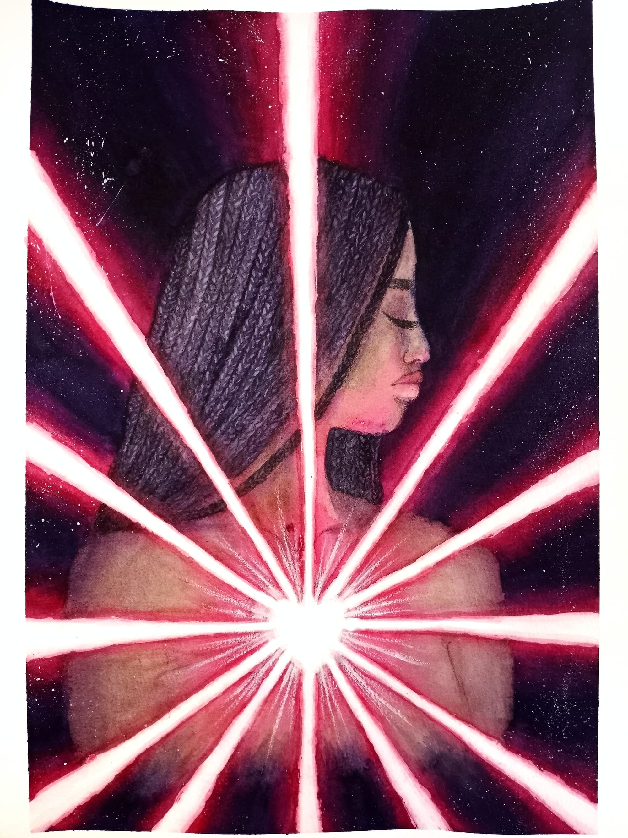 blurrr (Watercolor, yellow ink, colored pencil, embroidery floss, acrylic paint) / Angelique Spence