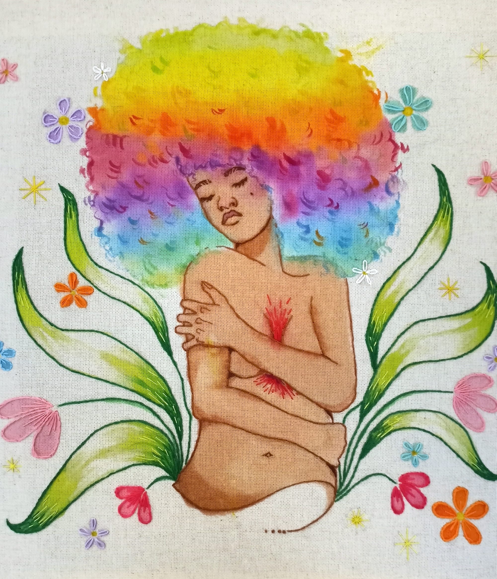 As I grow up, I’m learning to accept and be mindful of my emotions. In a culture that equates productivity to success and happiness, slowing down to listen to your body and simply feel without shame is very difficult. Accepting and learning from the ugly parts of yourself and your emotions is even harder. This piece represents the vulnerability of doing so and the happiness that comes with being at peace with yourself. Our wide range of emotions is such a significant part of the human experience, so why only value happiness?