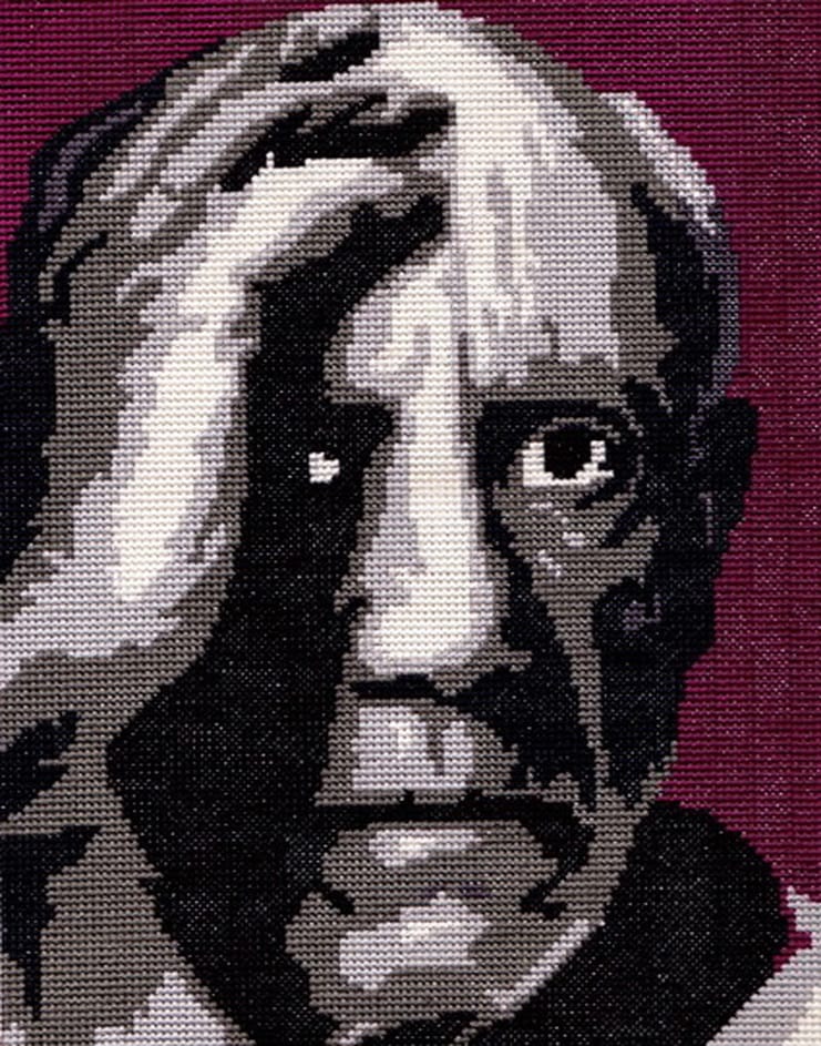 Although I began doing cross-stitch when I was eight years old, I consider the thought of myself as an artist is traced more directly to the two and a half years I lived in England a little over a decade ago. In a country that raises more than 70 breeds of sheep, fiber arts are basically a national pastime, and the quality of the work is outstanding and inspiring. So, when I entered some of my pieces into some local and regional exhibits, I was surprised and gratified by the positive reactions they drew. Creating representations of great masterworks by artists like Picasso and Chagall, as well as creating portraits of writers, artists, and statesmen out of embroidery floss, seemed as foreign to the fiber arts community as my accent and some of my habits.