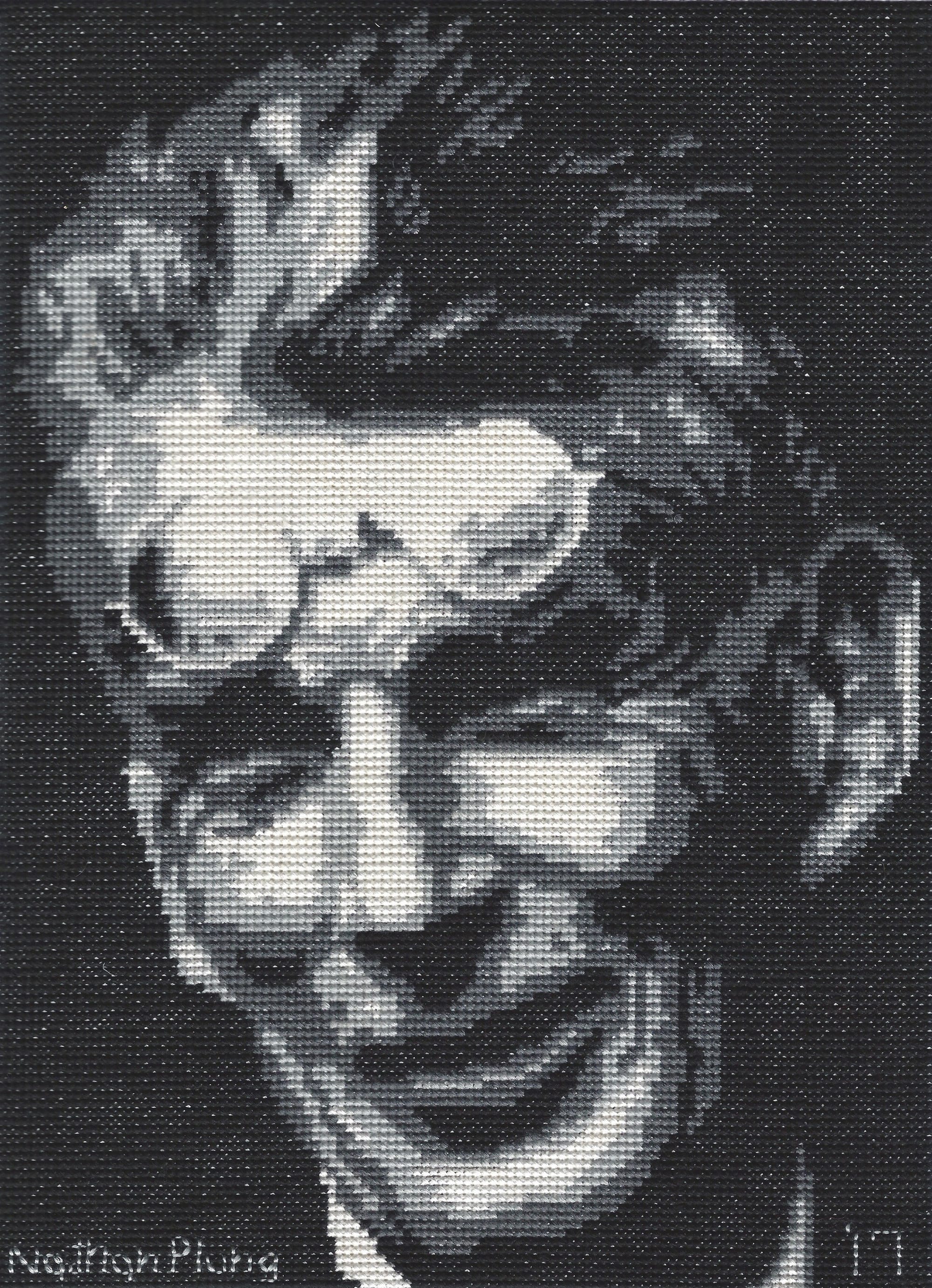 RIGHT TO LEFT: CJ & North (2019), Pablo Picasso (2012) / Cross-stitch by Nathan Plung