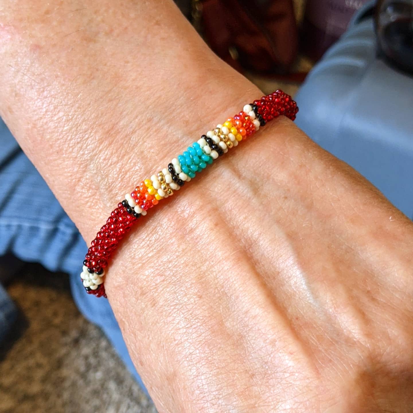I think there’s a lot of confusion out there about cultural appropriation and what people should and shouldn’t wear. Traditional designs make many socially conscious people shy away because they don’t want to offend anyone. I’ve found that people really respond well to pieces that look less traditional. I also think that people associate brick stitch and fringe earrings with hippie/boho style, so I’ve made a lot of pieces that are a bit more formal or with clean, modern lines.