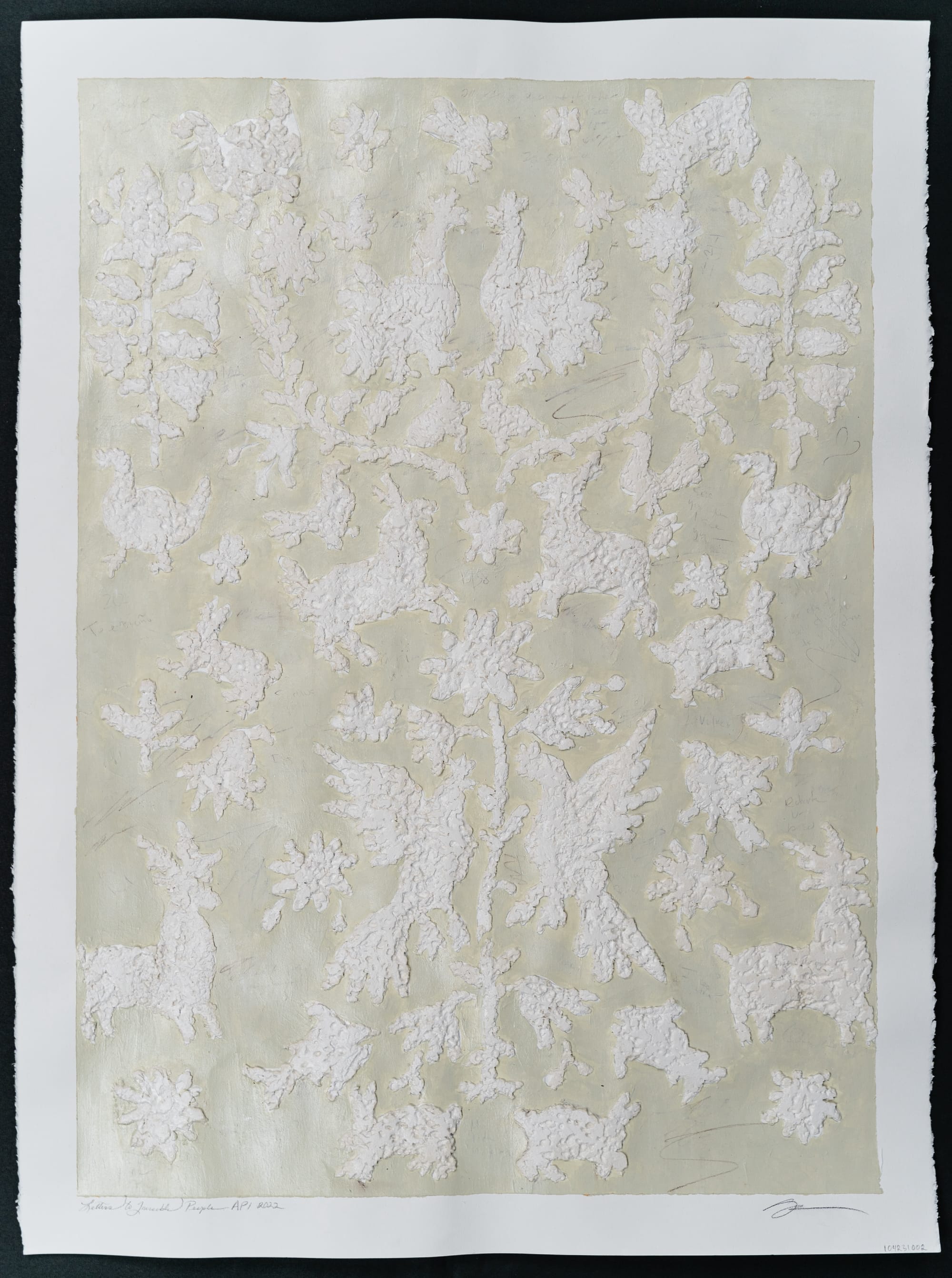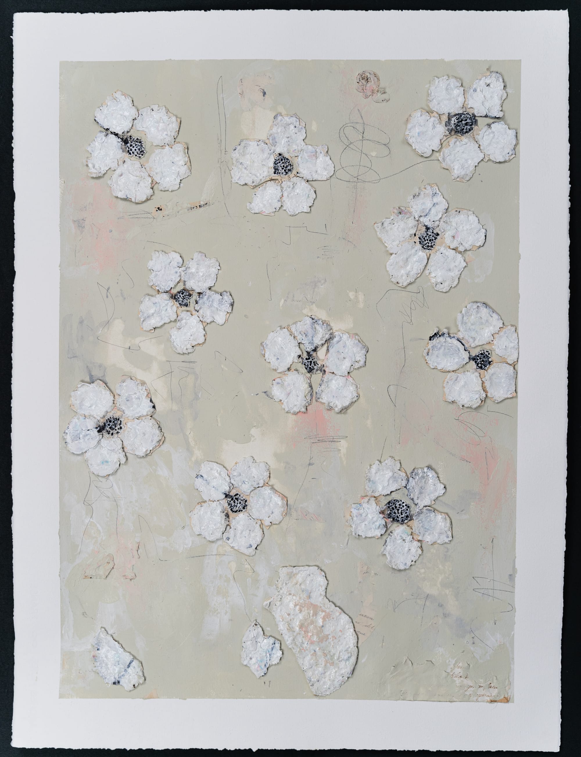 I primarily work with acrylic, charcoal, and paper-mâché, though I’ve been experimenting more with collage and gouache. I started incorporating paper-mâché while creating Letters to Invisible People and Ambos because I wanted to add texture and embed hidden elements like notes, letters, and personal histories.