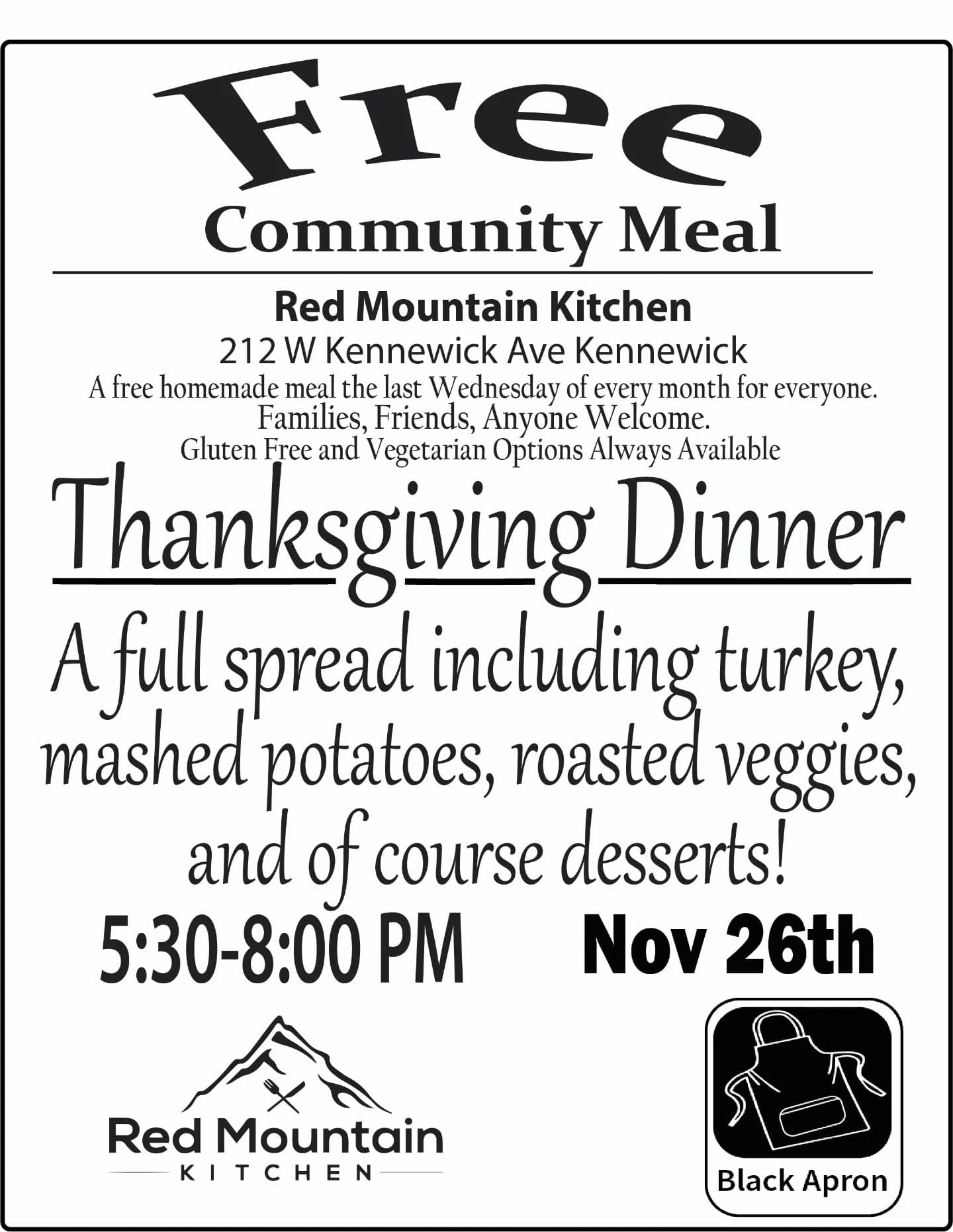 From left to right: Tri-Cities PRIDE, one of many free community meals, and baked goods