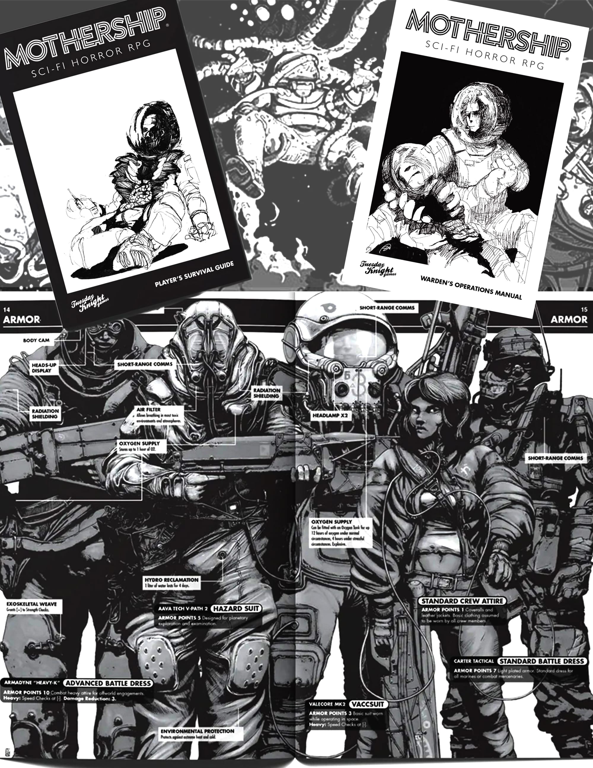 From left to right: Shadowdark, Mothership, and Daggerheart