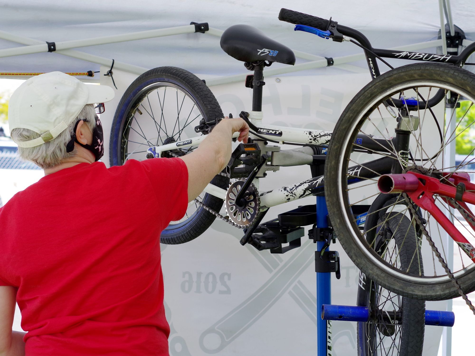 Our first pop-up repair ‘Get You Rolling’ event was at Tierra Vida in October 2020. It was a blustery Friday afternoon. We set up three repair stands in a sheltered spot and taught the kids and adults from the youth program how to repair flats. More and more community members came to us with bikes needing love. What was supposed to be a 2-hour event dragged on until the sun went down. Towards the end, the children we’d helped first were buzzing around us on their now-working bikes or helping others to repair their bikes. We repaired two dozen bikes, donated four more, and left the youth program equipped with the knowledge, tools, and parts to repair their own flats in future. After six months of isolation and uncertainty, this Mission Day refilled our cups and showed us how to succeed if COVID dragged on.