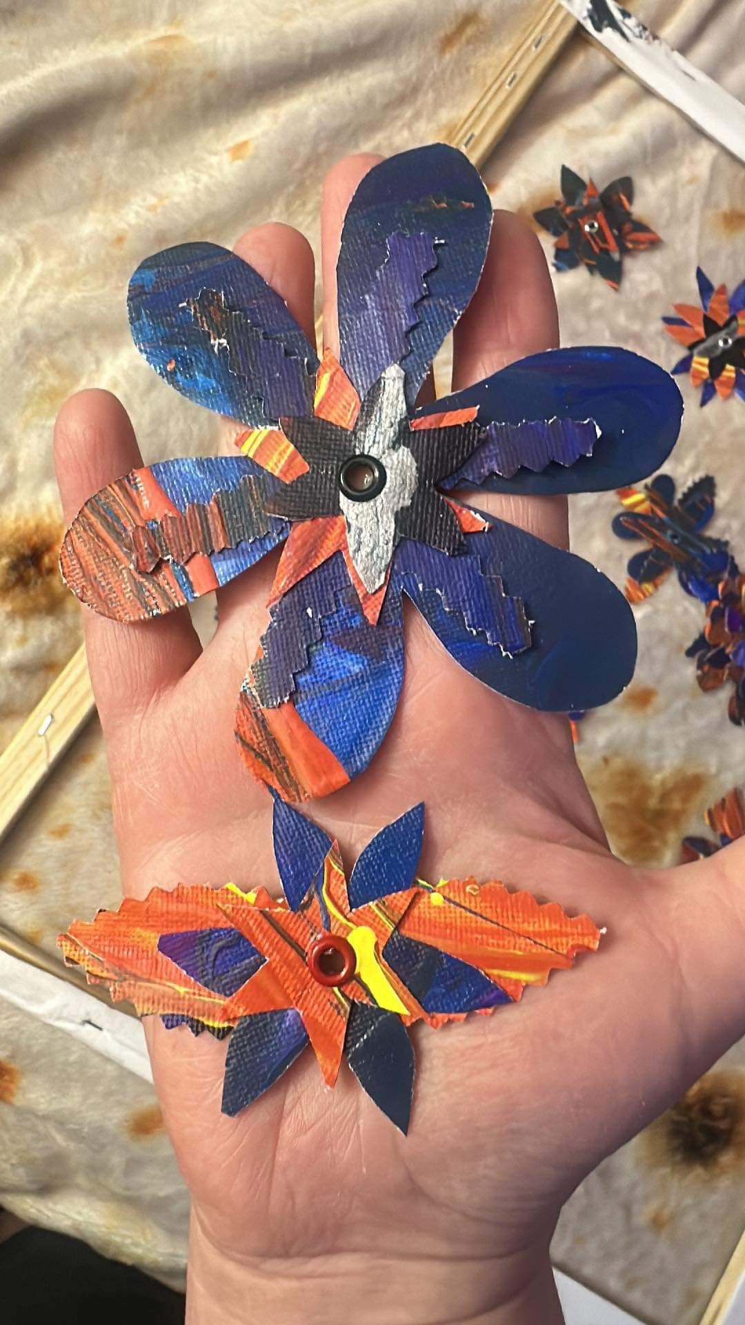 These photos give a glimpse into Nancy Peterson’s process of making their painting flowers.