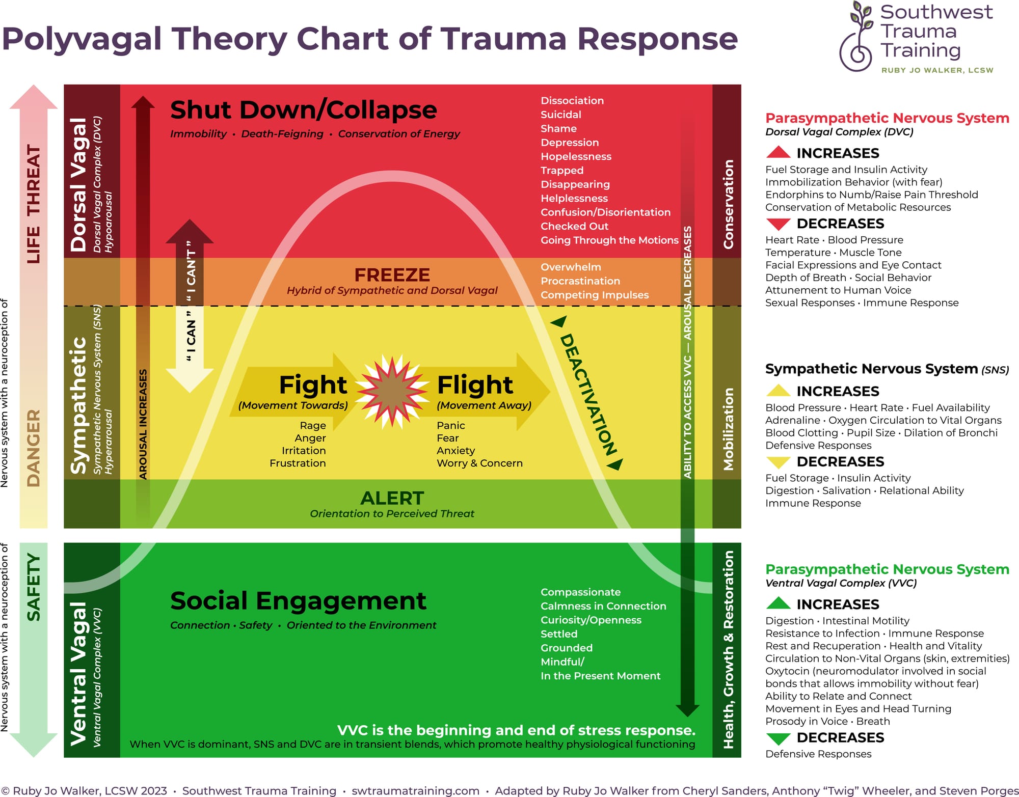 - Polyvagal Theory Chart, Ruby Jo Walker, https://www.swtraumatraining.com/_files/ugd/0b3865_0c80e1ea2b664e929808b3823d596a65.pdf