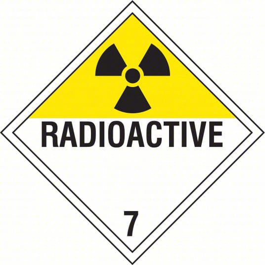 Where radioactive materials must be transported, including Hanford, the diamond-shaped yellow and black sign with the trefoil and the word ‘RADIOACTIVE’ in uppercase has become the standard for radioactive material transport.7