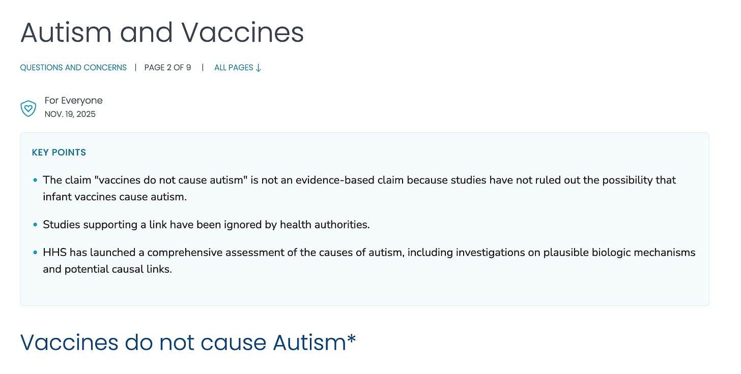 RFK Jr.’s version of the CDC website. They still kept the title “Vaccines do not cause Autism*,” with an asterisk, because RFK Jr. had promised Senator Cassidy he wouldn’t remove this language during his confirmation process.