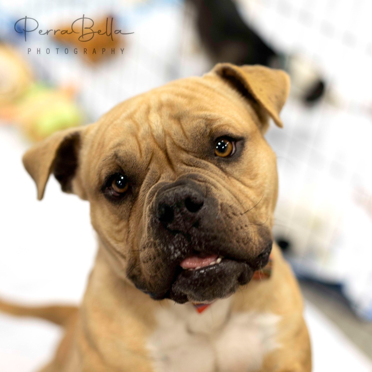Because she was found as a stray, she will require a home with a secure fenced yard at least four feet tall. A dedicated family who understands bulldogs and potential healthcare needs as she ages would be ideal. While she would most likely do fine with another dog — she always has in the past — her behavior with cats is unknown. If there are children in the home, it’s best if they are over the age of five.