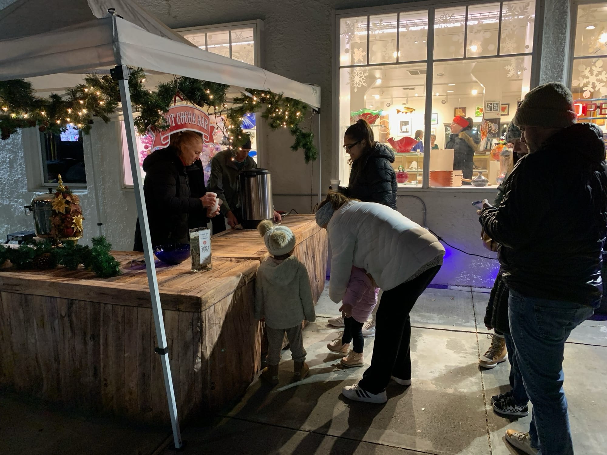 Enjoy our firepit and complimentary hot chocolate at a location perfect for viewing the parade! Then, step inside the Gallery to enjoy live music, make free kids’ crafts, and take photos with a Christmas cutout board designed by artist Lexie Forbes.