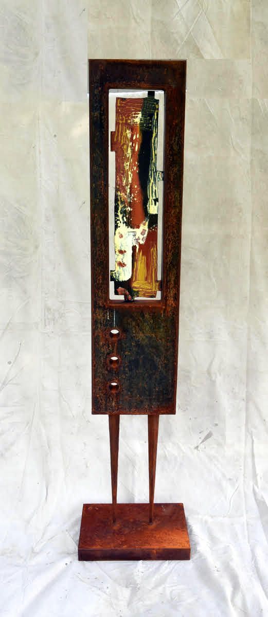 Like Ostergaard, Rastovich is also drawn to the beauty of imperfection. He uses raised welds, layout markings, and weathered scars to show the artist’s hand, echo creative thought, and remind the viewer of the effects of time.