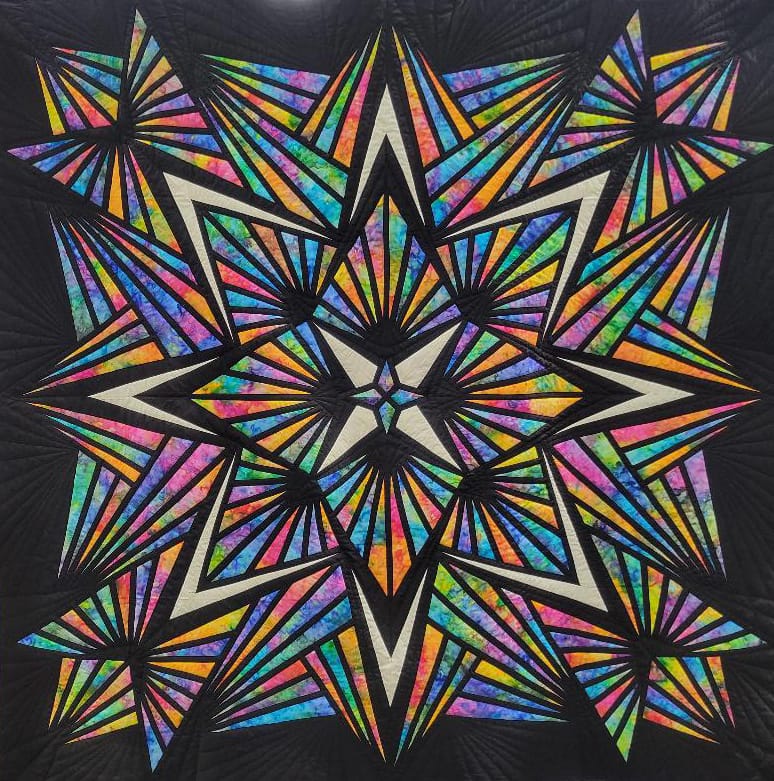 The 2024 raffle quilt, titled “Good Day Sunshine,” was created by the Sew Scattered Stitches, a group made up of Judy Deneen, Michele Boston, Janelle Domarotsky, Tina Foley, Judy Gelhaus, and Katie Harris. The quilting was done by Dana Pearson.