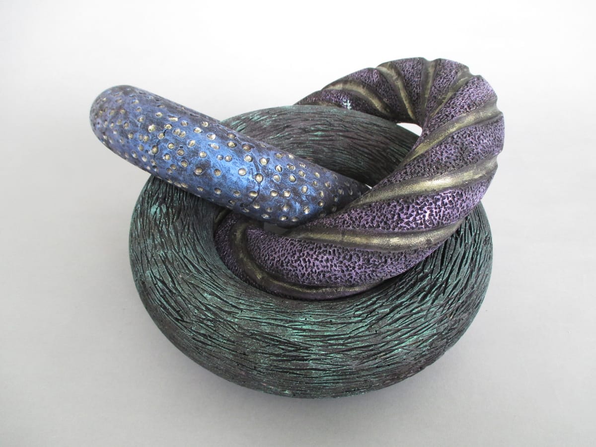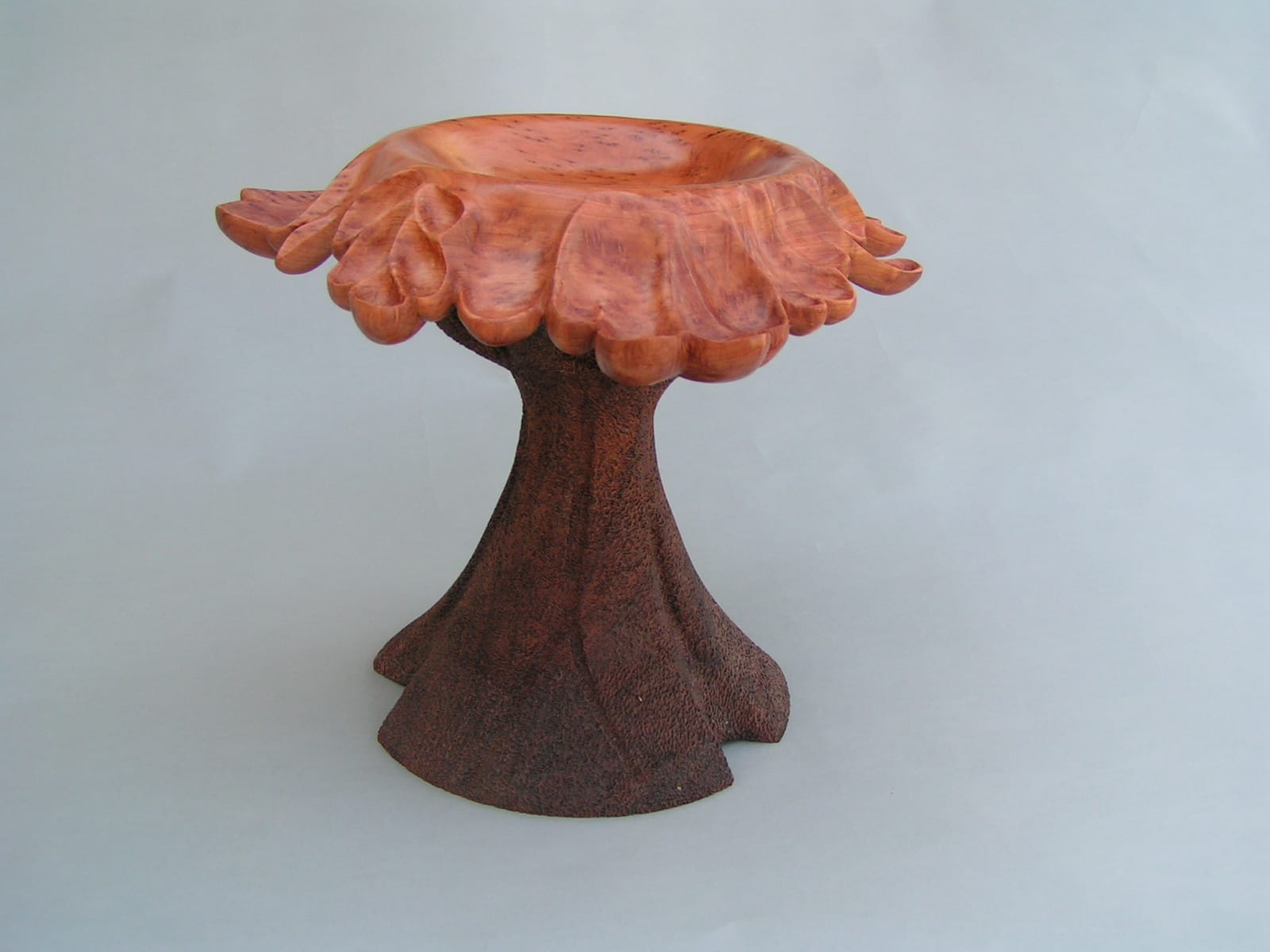 Jerry Johnson is a retired engineer and scientist who has been working in the medium of wood for the past couple of decades. He uses a lathe and various carving tools to create his art.