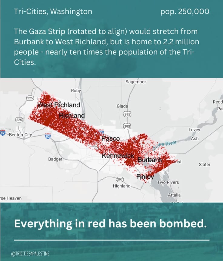 Perhaps, like me, you grew up hearing, watching, and reading stories about the Holocaust and asking yourself what you would have done if you were in that situation. That is why I cannot be silent in the face of a genocide perpetrated by my own government. And that is why I joined a small group of like-minded people to start Tri-Cities for Palestine.
