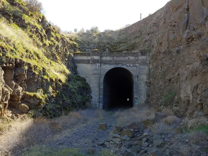 To access the tunnel, take Interstate 82 towards Oregon, then exit at Highway 14 to Plymouth. In approximately half a mile turn onto Plymouth Road and continue until it terminates at the trailhead under the I-82. Walk through the trailhead tunnel and the train tunnel will be just ahead.