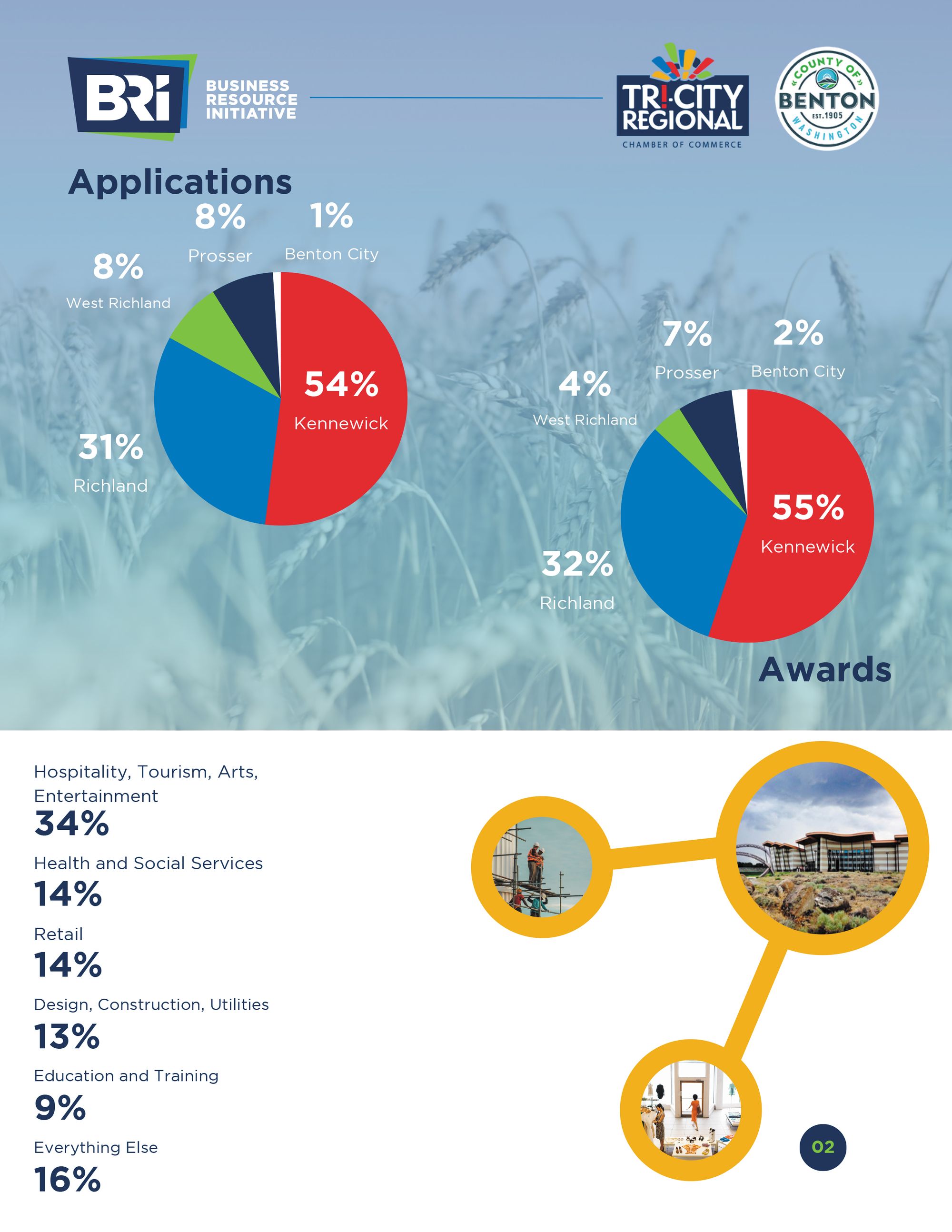 Applications for the final round of grants from Benton County’s Business Resource Initiative closed on June 30, 2023. The Chamber of Commerce is currently processing final round applications to be awarded in August 2023. Data provided below is current as of June 27, 2023.
