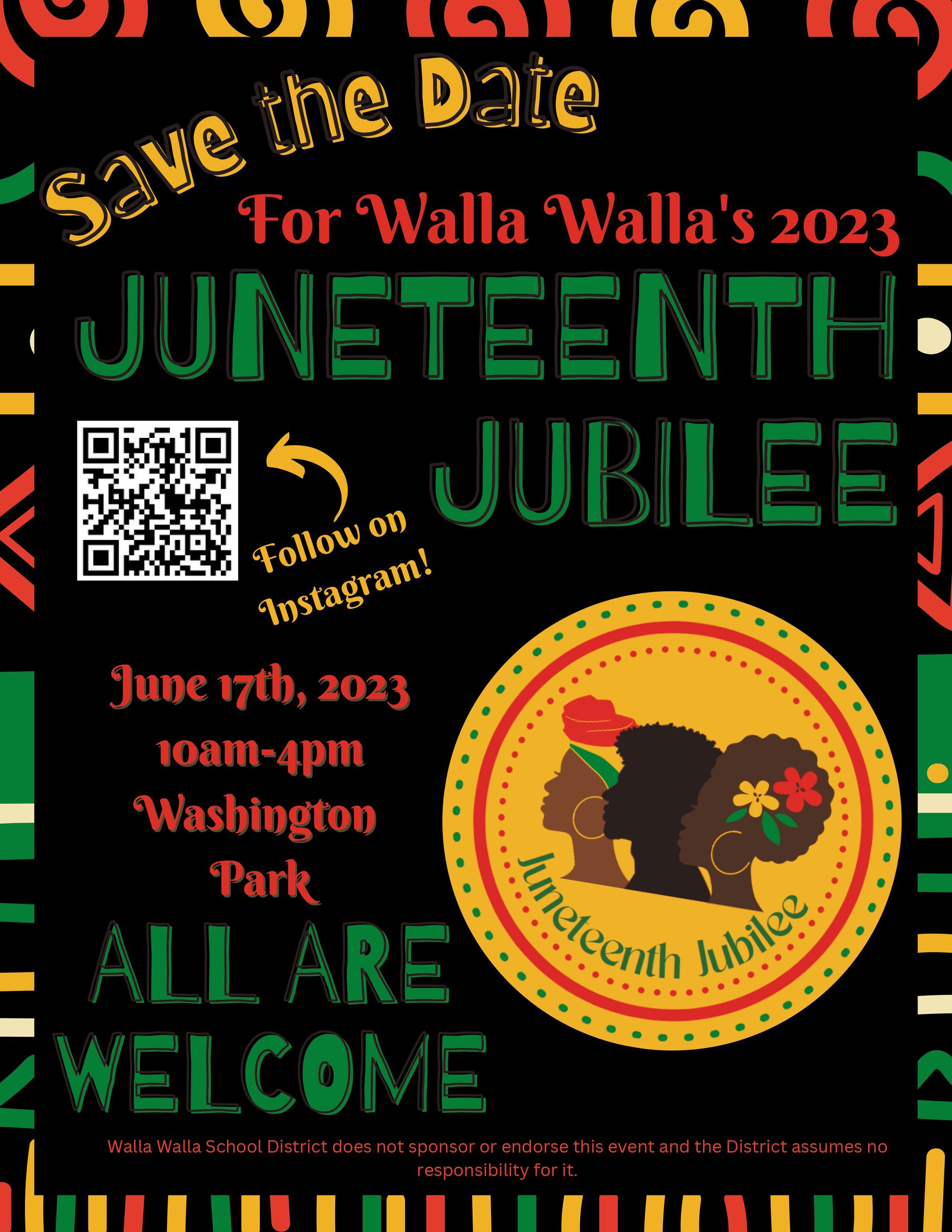 This year, all Walla Walla residents will have the opportunity to come together to honor and celebrate Juneteenth on Saturday, June 17 in a beautiful and central location in our community — Washington Park. We purposely selected this date because while the official state holiday is Monday, June 19, we are well aware that many people still have to work that day, so celebrating on the prior Saturday allows greater access to the event.