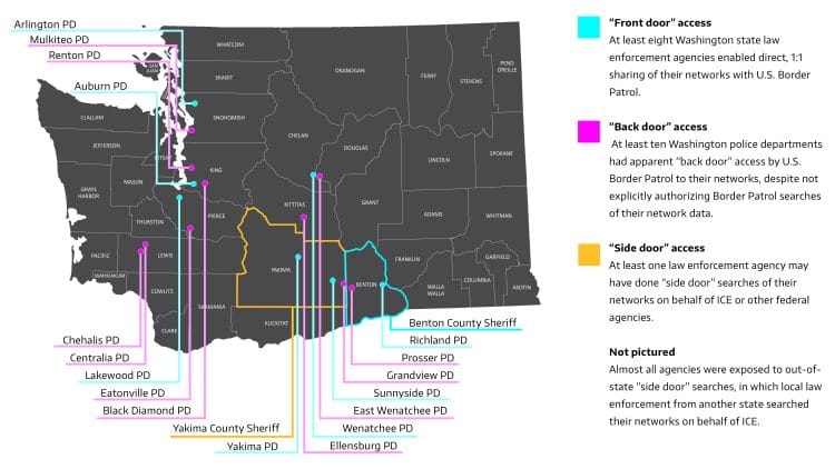 Numerous agencies in Washington cities had ‘back door’ access reports, meaning they were accessed by U.S. Border Patrol without authorization.