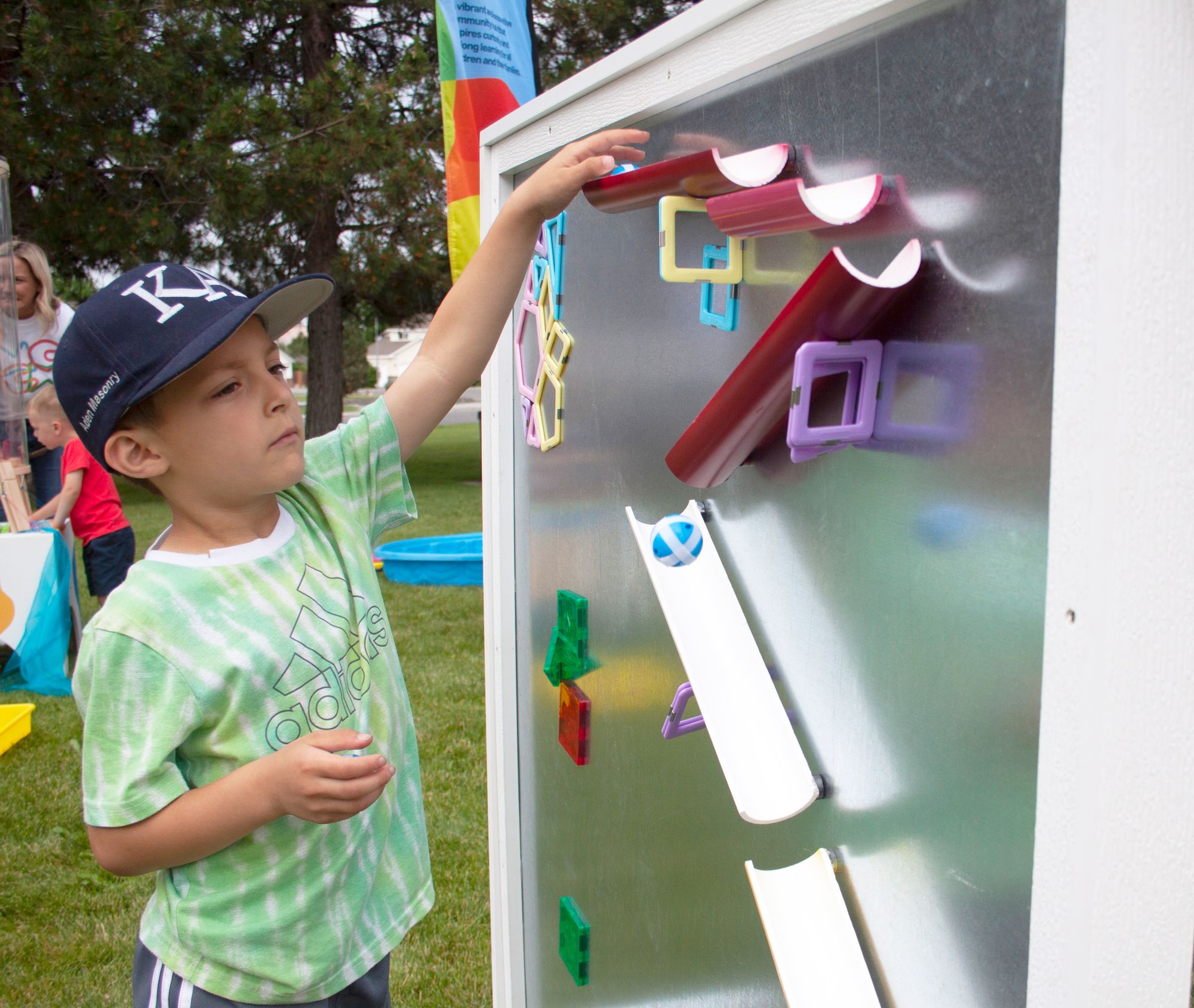Throughout the summer, the Mid-Columbia Children’s Museum Taskforce attended upwards of three community events each month, including the Pasco Farmers Market, Richland’s Pop-Up Play Days, Kennewick National Night Out, and Richland Library’s STEAMKids Day. At these events, children of the community were provided with exhibits and experiences that showcased the blend of learning and play quintessential to a children’s museum with a focus on STEAM standards.
