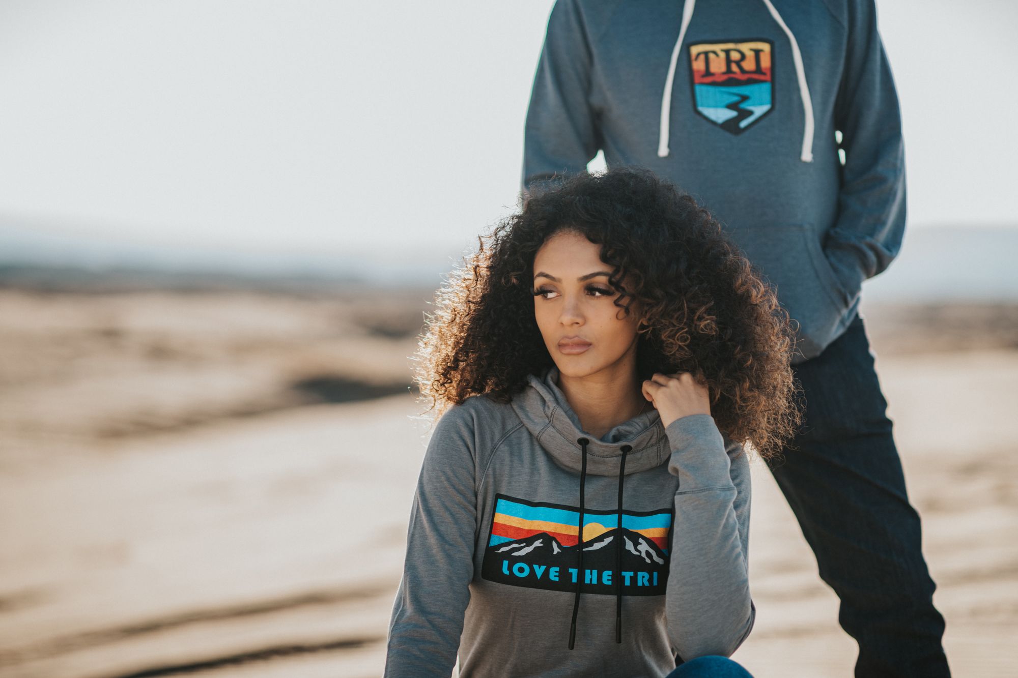 LoveTheTri is also a clothing retailer. There is a profit of about $10 in every shirt, hat, and hoodie that I sell, and 100% of that is donated back into local nonprofit charities. And all of the retail clothing is embroidered and screenprinted here locally at Atomic Screenprinting.