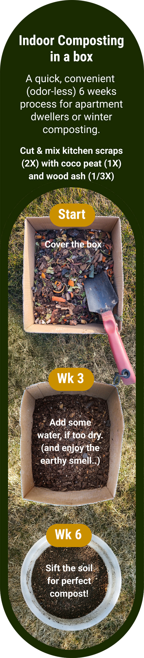On the right (below for web version) is a Japanese composting method inspired by an article, The Compost by My Couch: How (and Why) I Started an Odorless Bin at Home, in the New York Times.