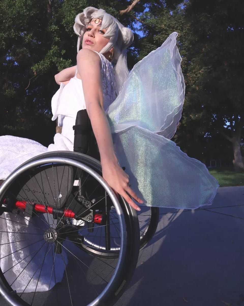 Colleen’s disability has created unique challenges for her cosplay. “I have to make costumes a bit differently to accommodate my disability. This may be shortening skirts or capes so they don't get caught in my mobility aids, or even decorating my wheelchair wheels.” Not all events are disability-friendly and accessible, but she says there has been a lot of positive change in recent years with more conventions making their events accessible for disabled attendees. “We still got some work to do, but I truly love this hobby, and I can see myself cosplaying for many years to come!”