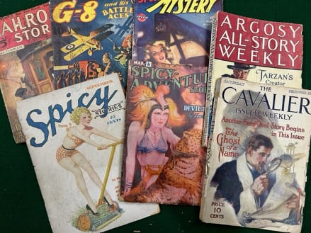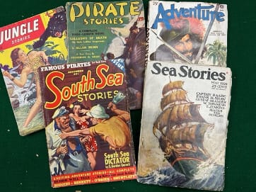Historical pulps included: Golden Fleece, Argosy, Cavalier, All-Story Magazine, Wide World Adventures, Sea Stories, Magic Carpet, Piracy, South Sea Stories, Big Story Magazine, Blue Book Magazine, and Oriental Stories.