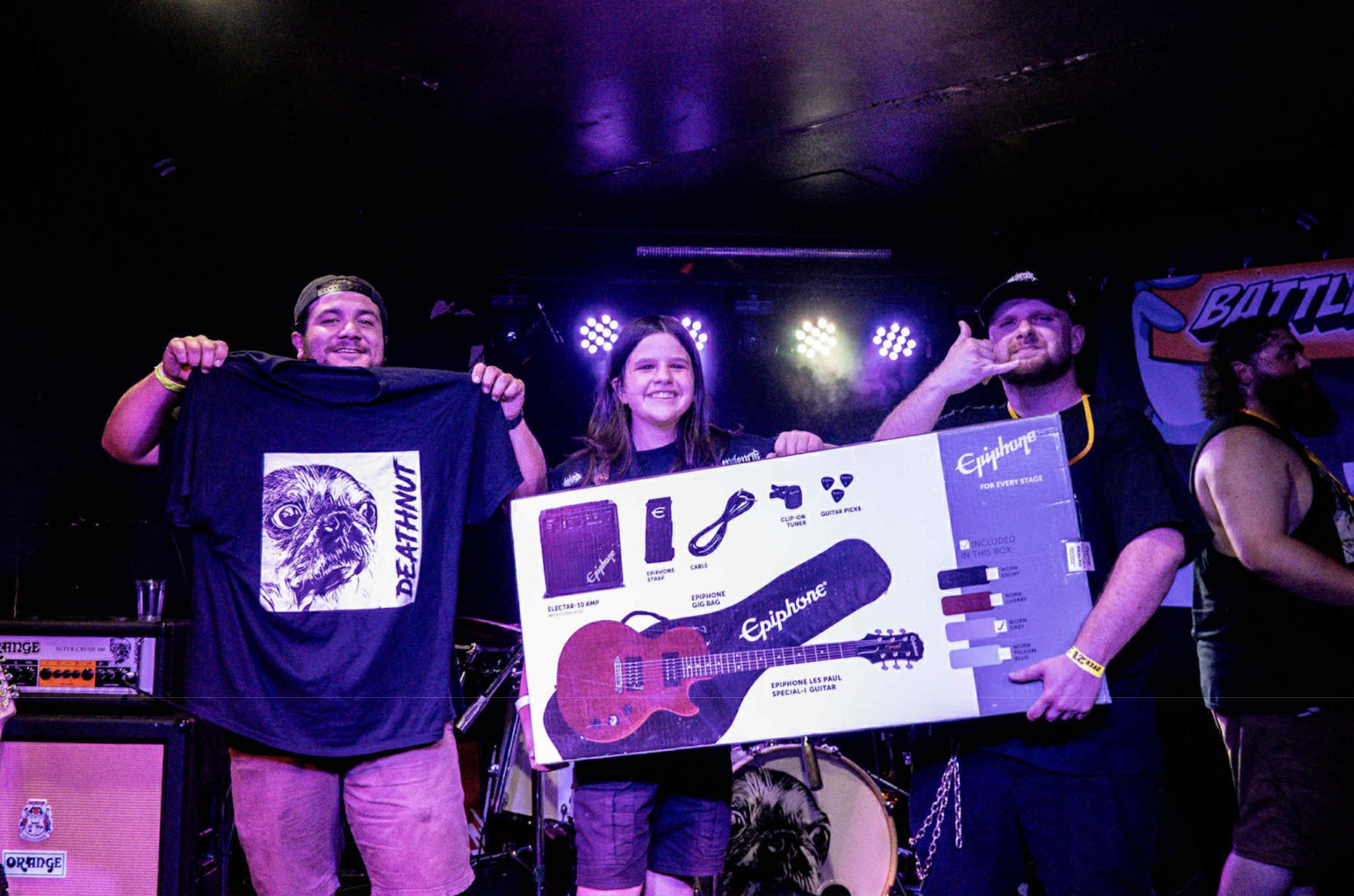 After the final set on Saturday by popular hardcore band DEATHNUT, the band held a giveaway. To close out the festival, they gave out some band merch … and an incredible Epiphone starter guitar pack, complete with a brand new guitar, amp, tuner, picks, and more!