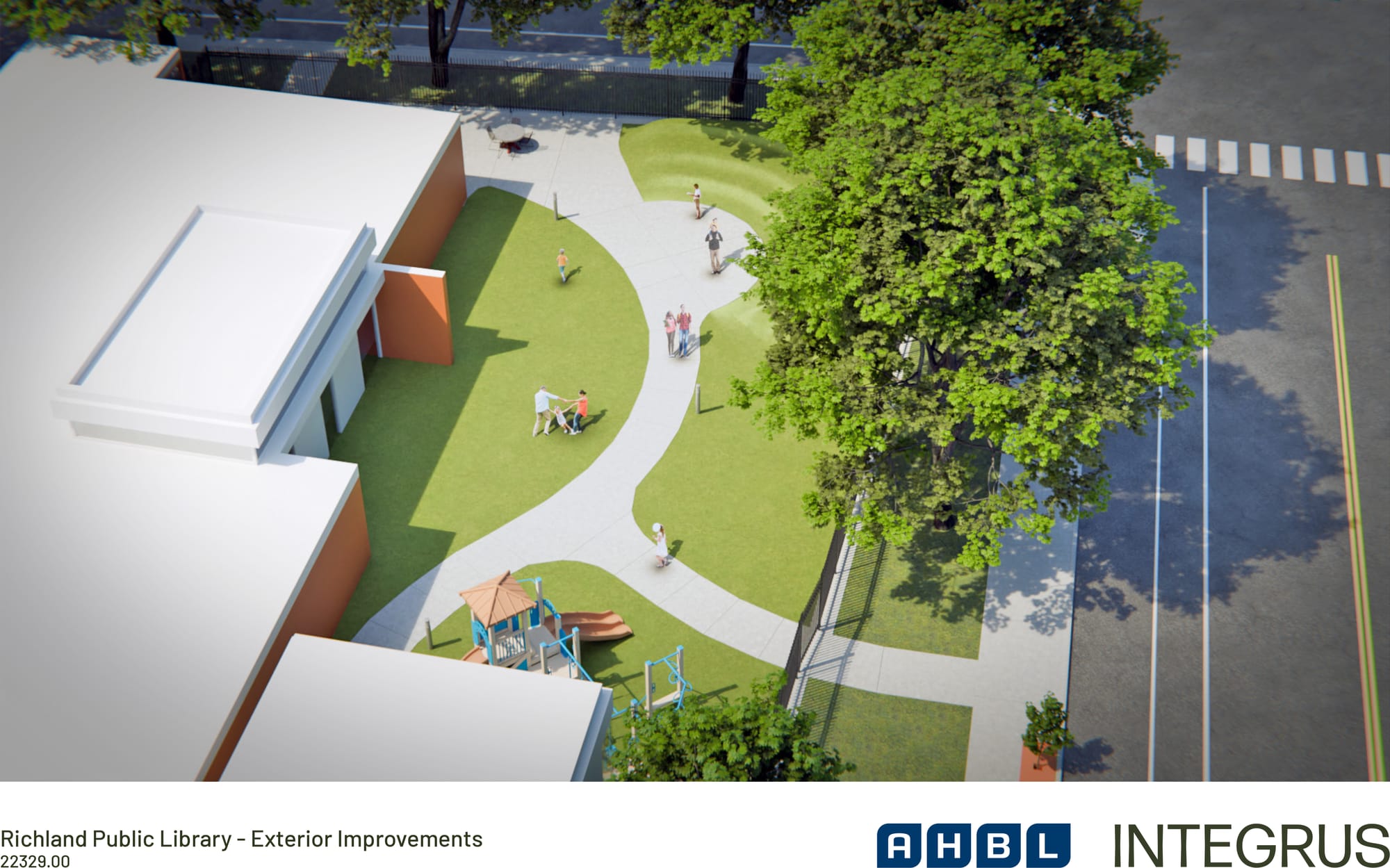 Concept art for outdoor space. / Courtesy Richland Public Library