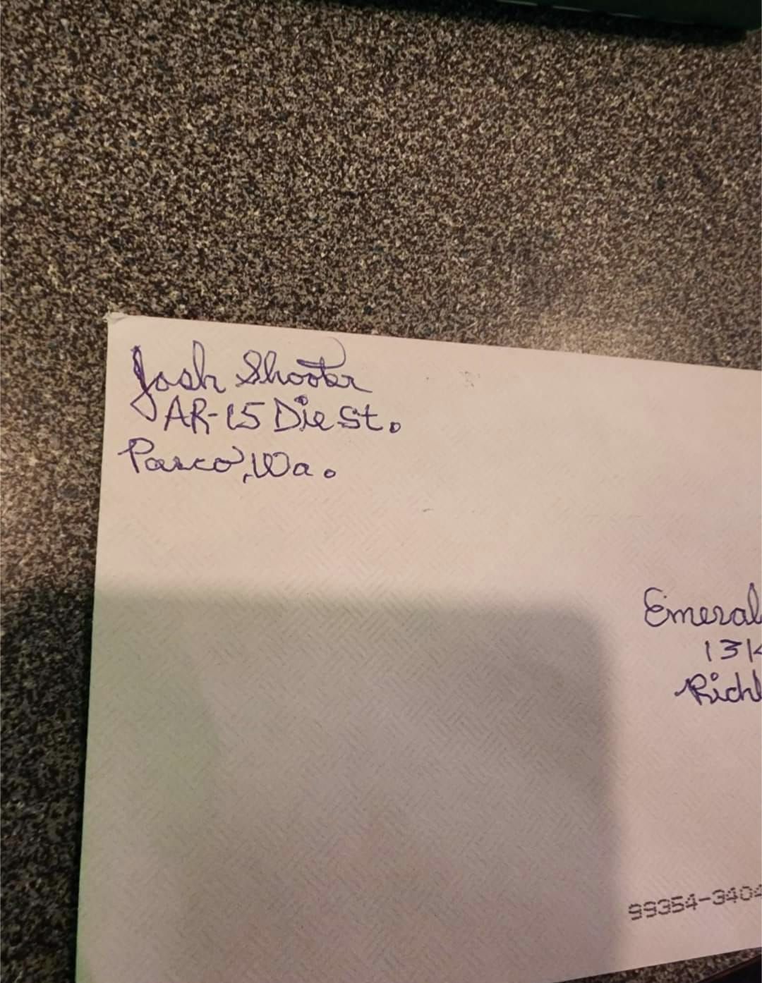 Yes, receiving the letter was jarring. The return address alone — “John Shooter, AR-15 Die St. Pasco, WA” — was very threatening. I did not want to open the letter. I kept it sealed until I could find a person of the law to open it. I had no idea what [I would] find inside. Although I don’t want to quote exactly what it said, so as to not impede progress on the investigation, inside was a letter essentially saying that if we hosted drag queens, people will die. The police did consider that a threat (they said the return address was just an implied threat) and say they have sent it to the detectives. I also reported all I knew to the FBI and forwarded them pictures of the envelope and contents.