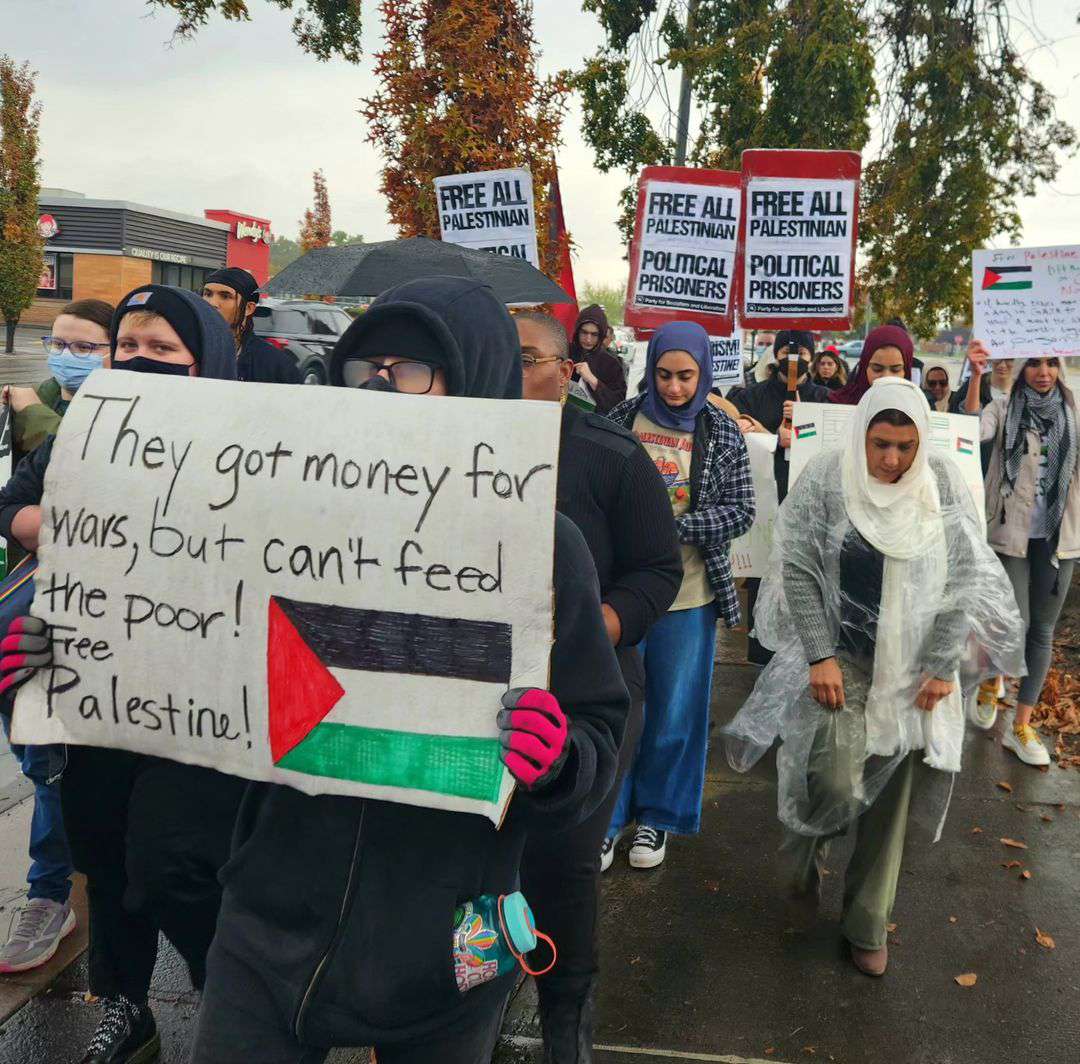 There is also our Muslim community to consider. The Tri-Cities is home to nearly 1500 Muslims from all across the world, including many refugees or immigrants displaced by U.S. imperialism. It is clear from their widespread support of Palestinian liberation that the Islamic community in Tri-Cities is sympathetic to the experience of oppression and displacement. Standing against U.S. imperialism and racism in Palestine shows our Muslim neighbors we also care for them and their struggles. This solidarity can unite our community along a variety of positions, and shouldn’t be taken for granted or treated as a secondary concern. There are real links between the methodologies, technologies, and legal frameworks of surveillance, population control, policing, and displacement in Palestine with our communities right here at home — links the Black, Indigenous, and Latine communities in particular can relate to with our Muslim neighbors.
