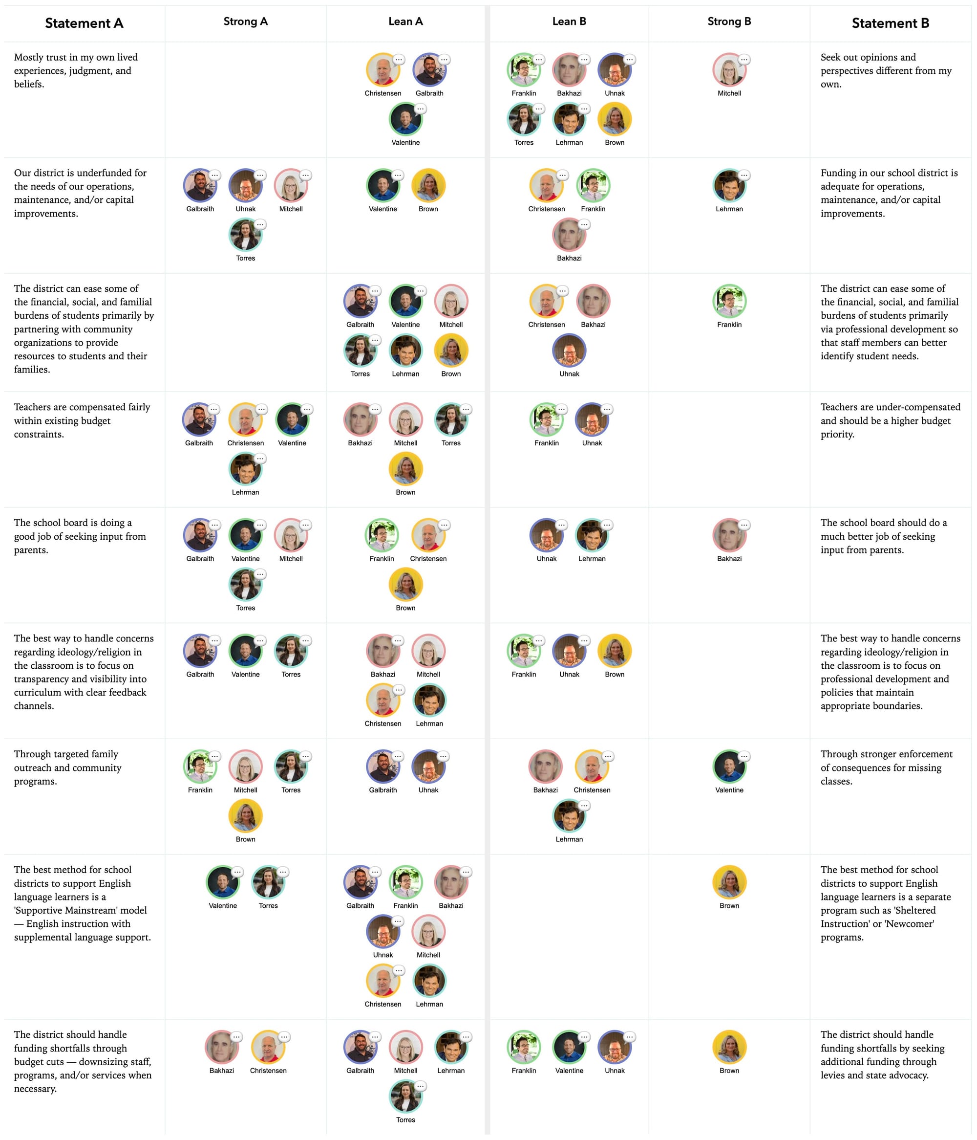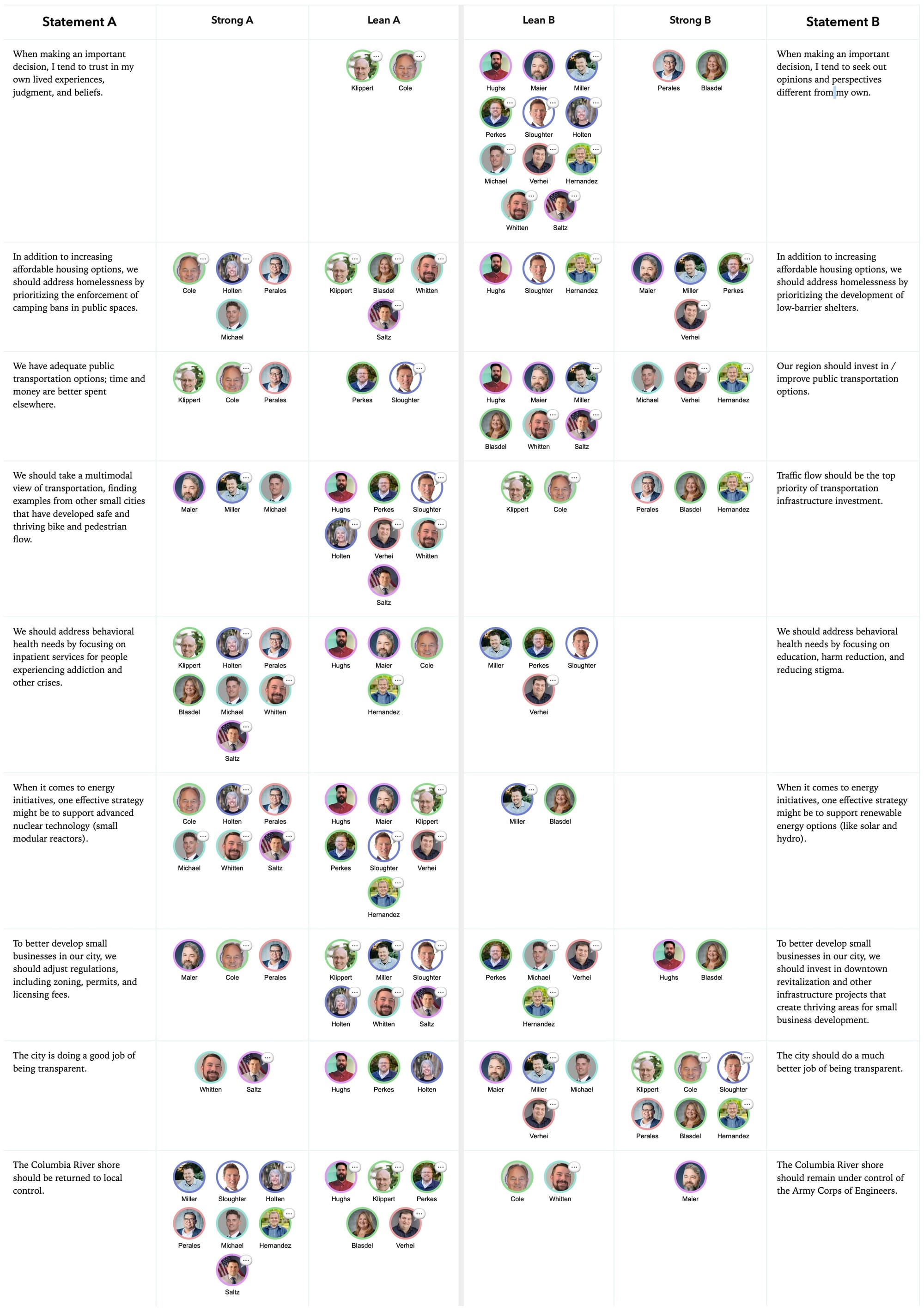 tricitiesvote.com also has its own questionnaire which includes a handful of A/B statements to make it easy for voters to visually compare candidates on issues. We also give candidates the ability to elaborate on their answers. (See the aggregate view of the A/B questions below.)