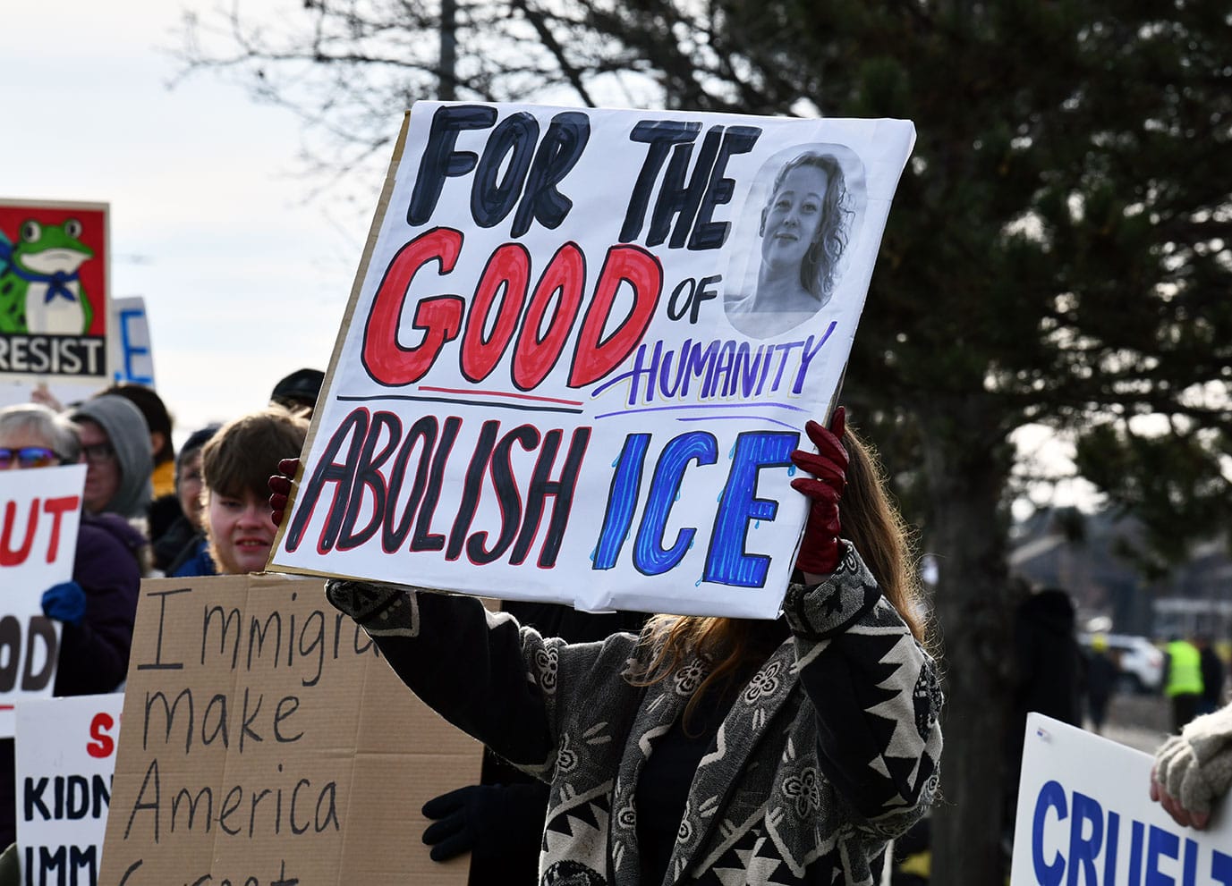 Look at those faces. Thank the persistent, kind-hearted Americans who see what's going on and refuse to quietly accept it. They show up in the cold, on short notice. The senseless execution of Renee Nicole Good had taken me to a dark place. Spending a few hours mingling with these loving souls brought me out of that.