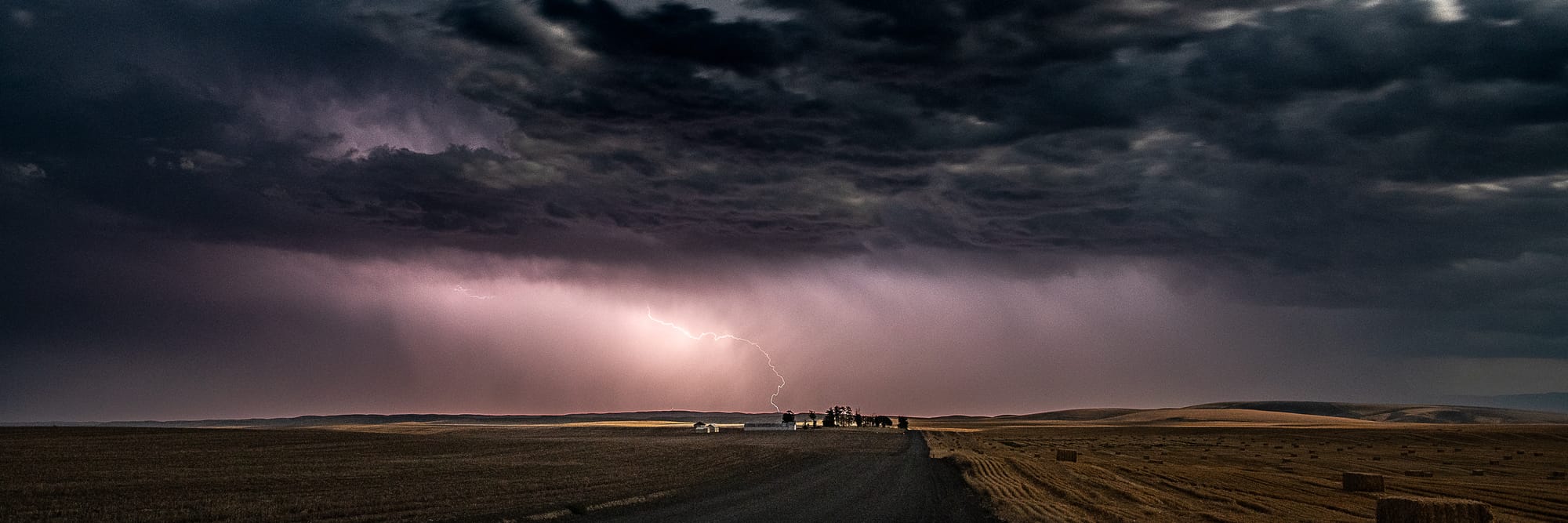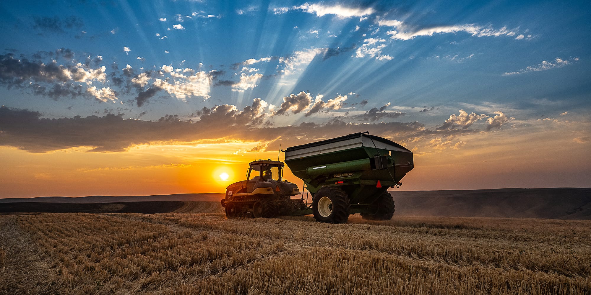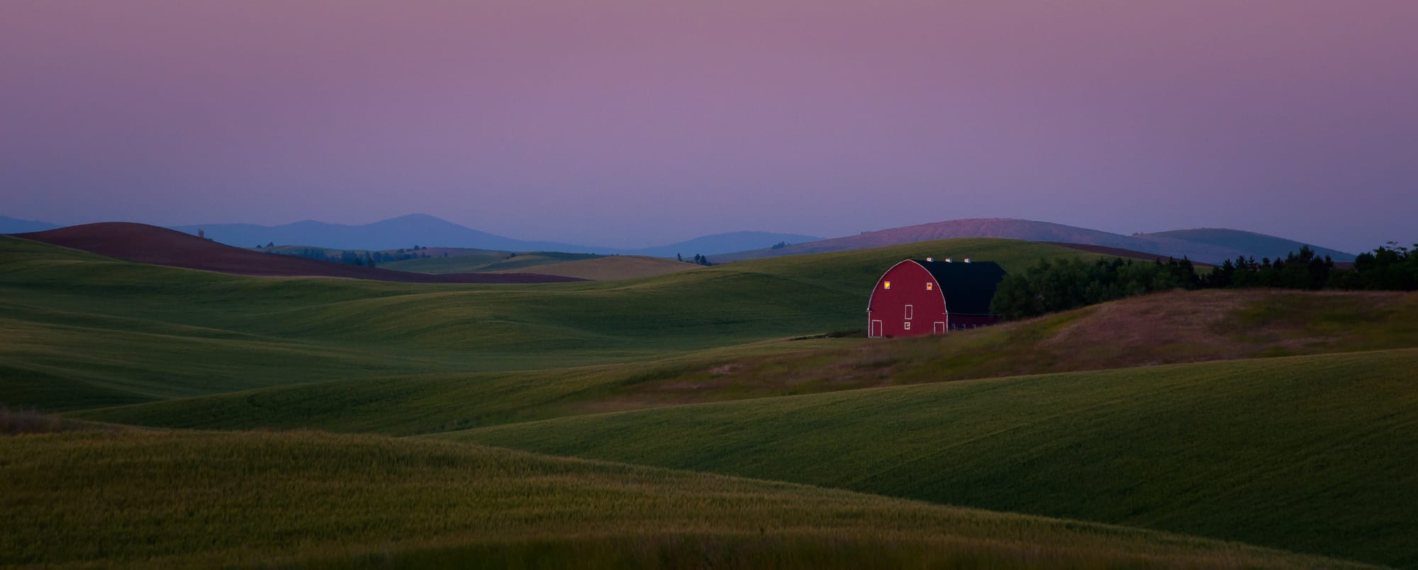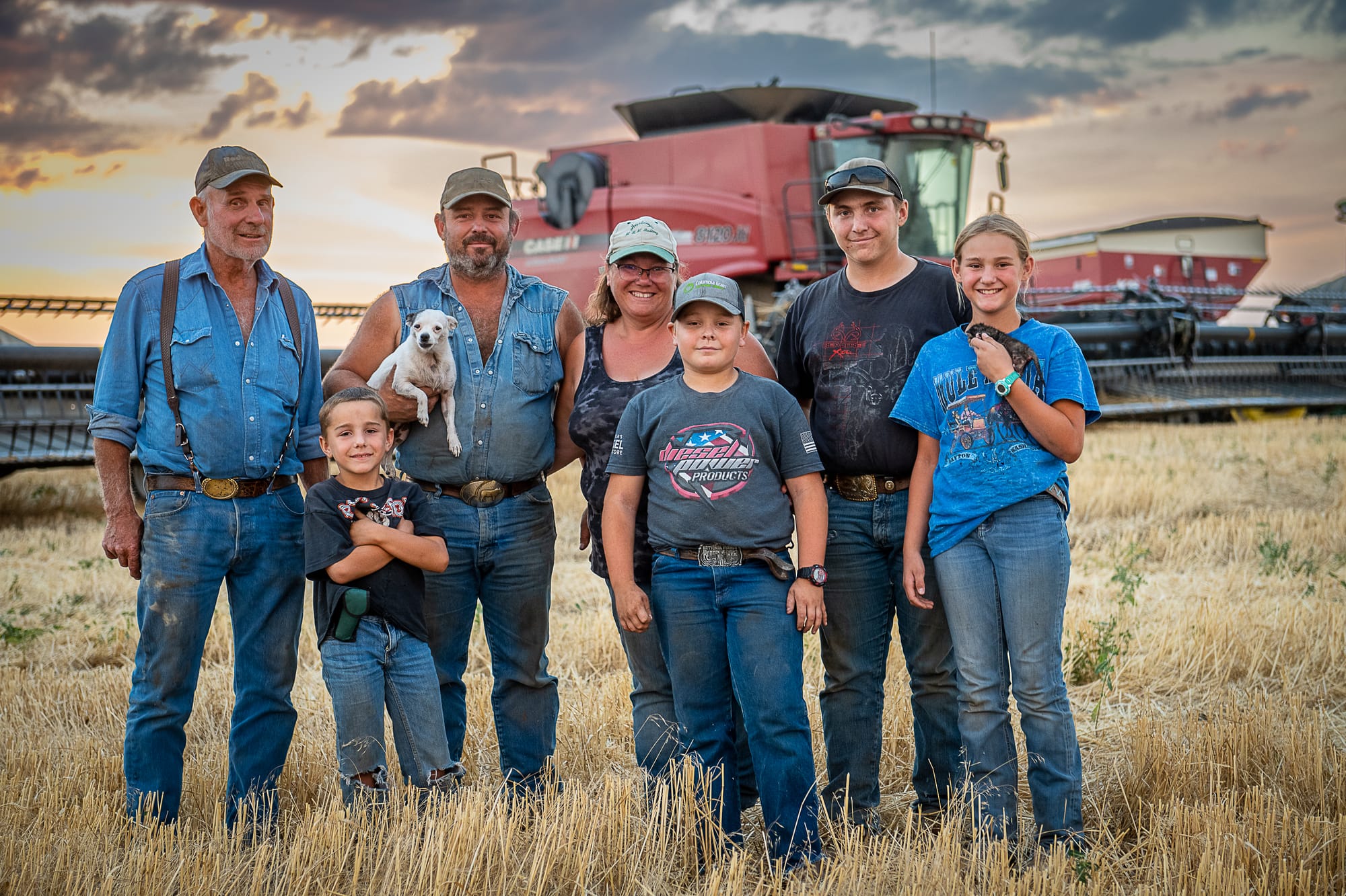 Tri-Cities Grain serves as a major collection and distribution hub for grain destined for both domestic and international markets. All through harvest season, as many as thirty trucks per hour unload the grain collected from around the Columbia Basin and surrounding areas.Some of the grain bound for overseas markets begins its journey down the Columbia River via barges. Here, a barge takes on a load at Tri-Cities Grain, near the confluence of the Snake River and Columbia River in Pasco.The Hastings family has been farming on several thousand acres perched above the Snake River since before Washington became a state in 1889. All of the kids help out from a very early age, and the harvest is carried out almost entirely with help from the family. FROM LEFT: Dick Hastings, Josh, Mike (holding Comet, the dog), Mindy, Justin, Nick, and Heather.Late season thunderstorms in July and August pose a threat to wheat farmers. Hail can damage the crop, making it hard to harvest, and lightning often starts fires in the dry wheat, which can destroy a whole season’s worth of work overnight.A farmer near Steptoe Butte north of Colfax, Washington plants the seeds for next year’s crop in September, hoping for enough moisture over the winter to bring the plants to germination.George Struthers continues to farm on land that has been worked by his family for over 100 years.The beauty of wide open spaces is one of the intangible rewards of farm life.