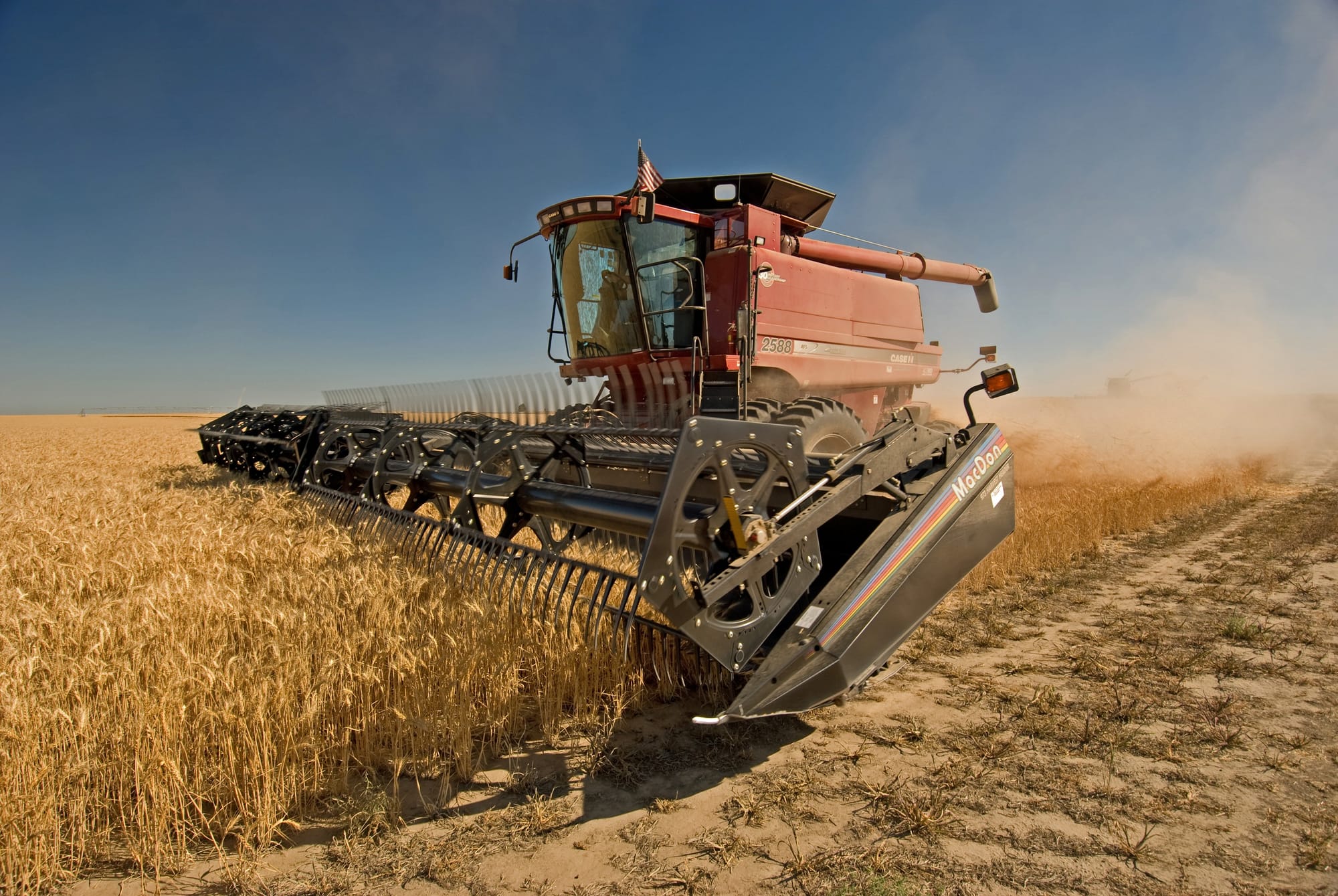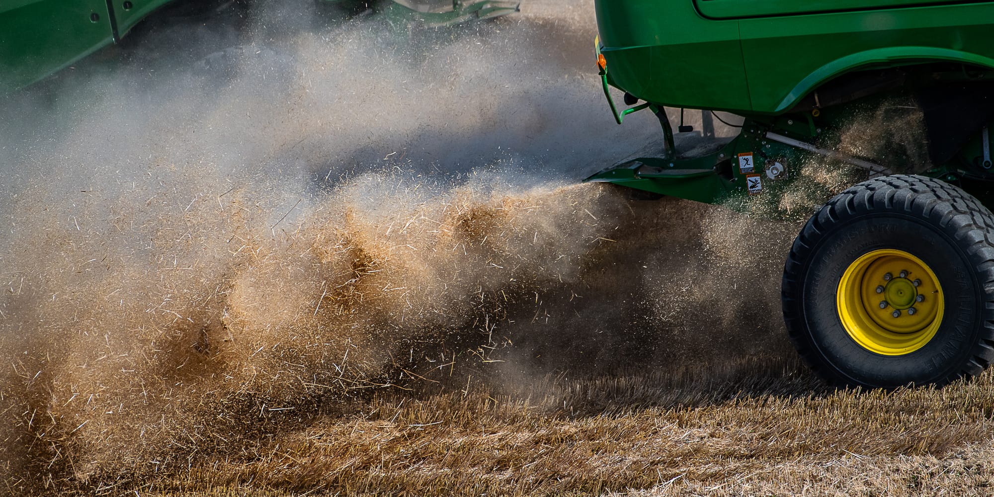 Depending on local conditions, wheat straw is sometimes left in the field to help retain soil and moisture, burned to help reduce pests, or baled and used for other purposes.Wheat harvest is hot, dusty work, often involving long hours. Here, Nick Hastings uses an air compressor to clean his combine for the evening.